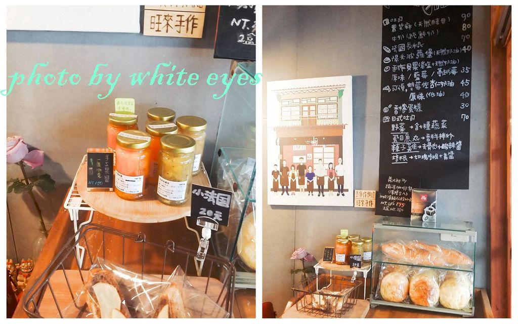 右側架上是「早晨小姐 GOOD。MORNING」販售的手作麵包與果醬。