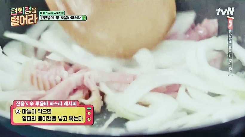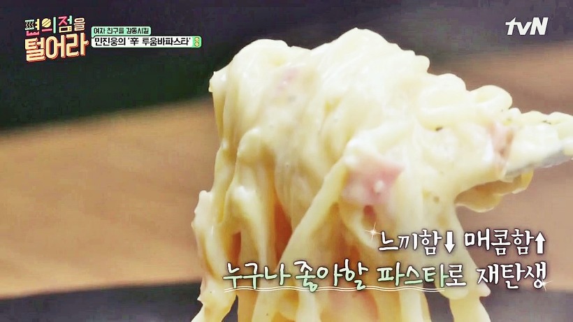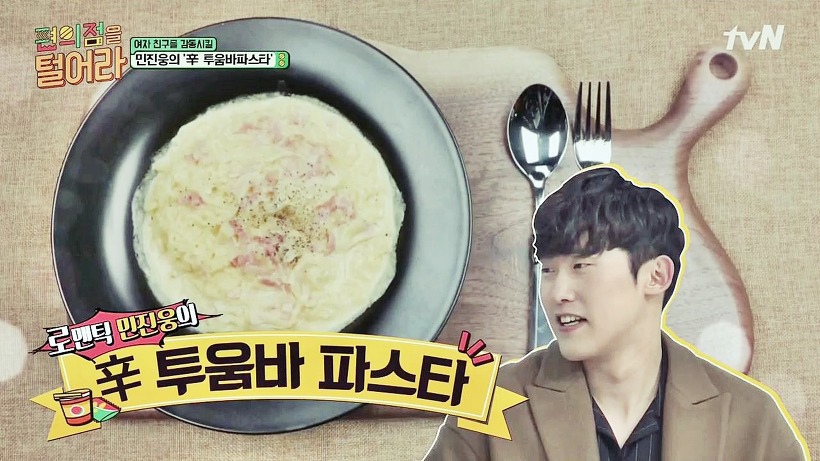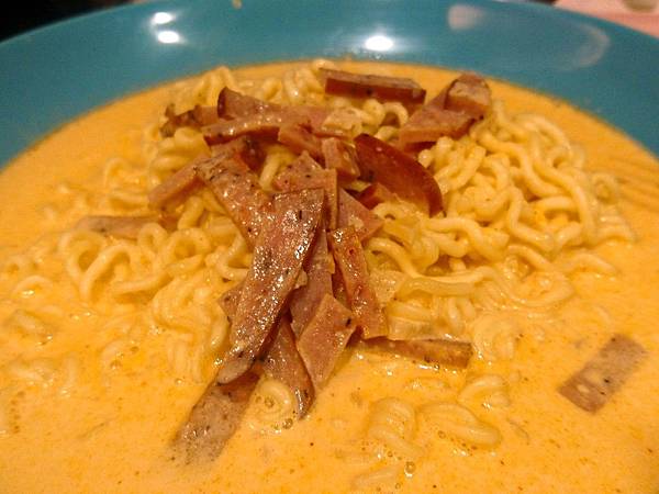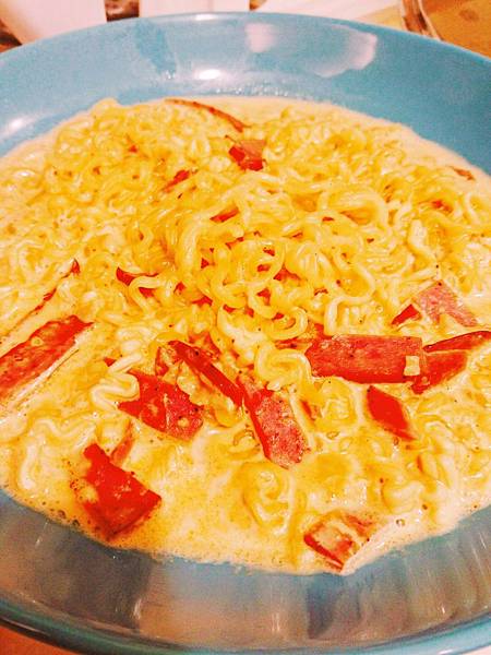 在3/13正是撥出首集節目中,演員閔鎮雄(其實我根本不知道他是誰)製作的私房便利店食譜→Xintongba,就是用辛拉麵代替義大利麵條而成的一道義大利麵料理!